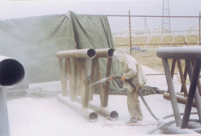 采用高速喷砂枪进行钢结构金属表面喷砂处理